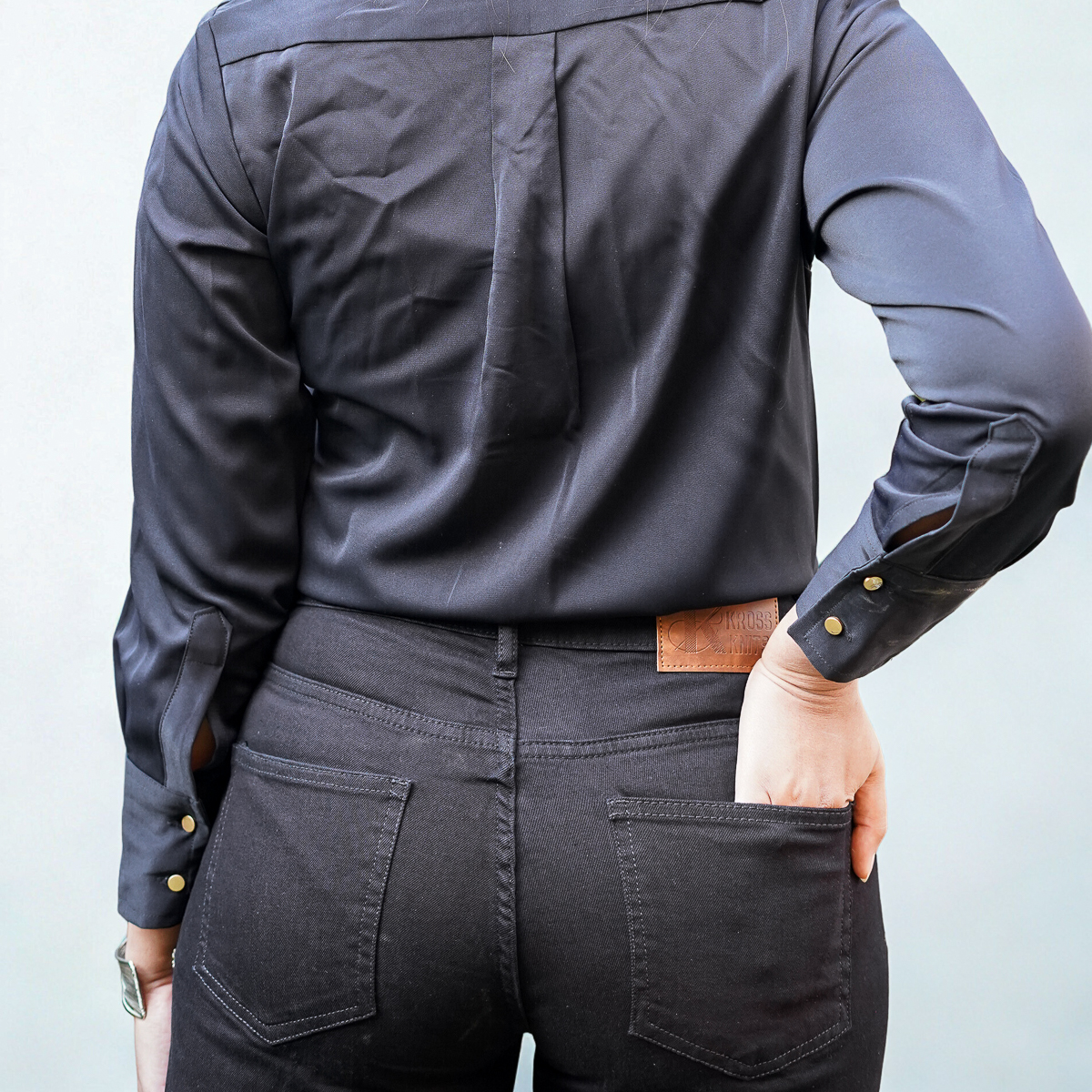 They come in a deep indigo shade that is very close to black, giving a sleek and versatile appearance. - Are these jeans comfortable to wear all day?
