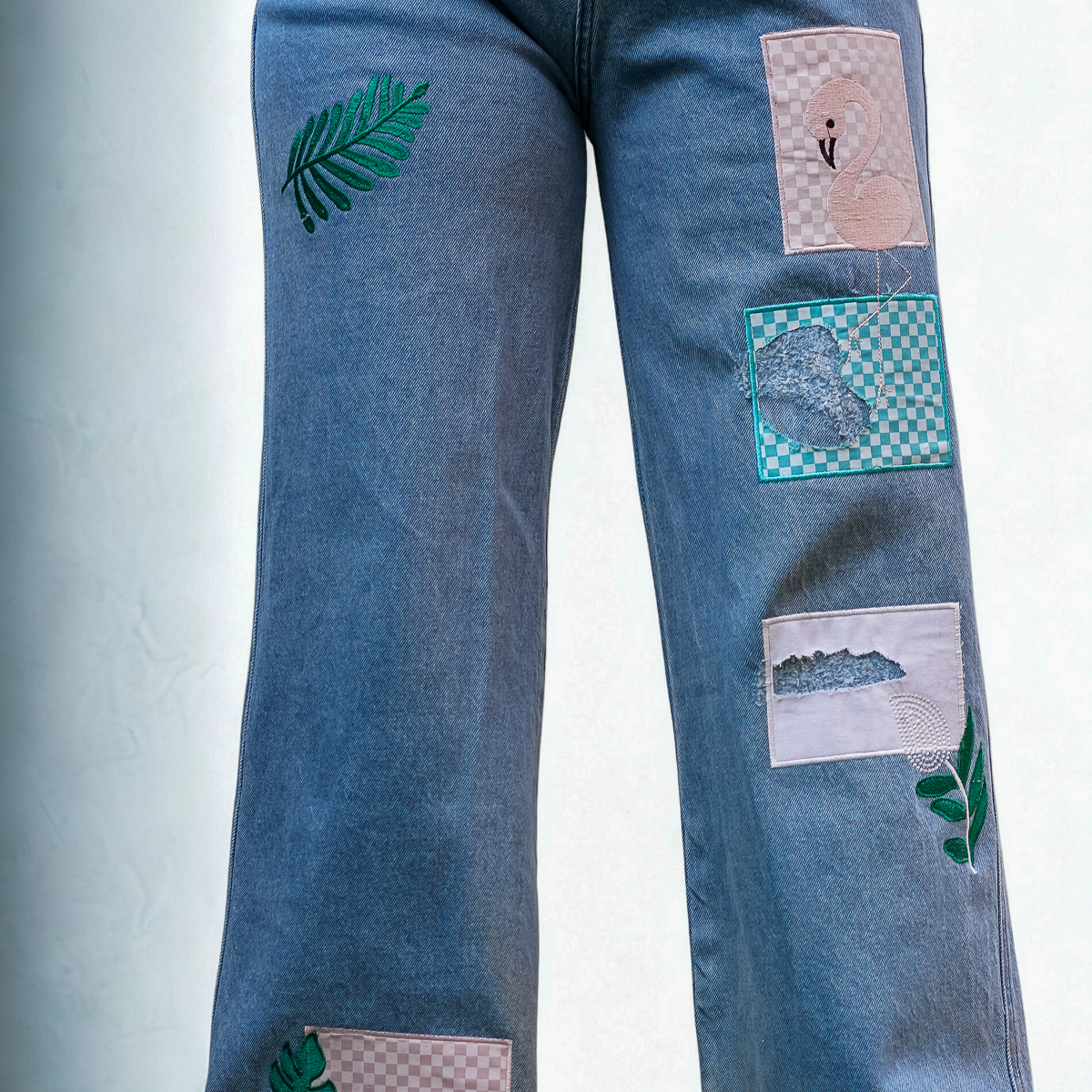 You can pair it with jeans, leggings, or even a casual dress. For a bold matching look, wear it with our embroidered jeans featuring the same “Peace Embrace” design. Add sneakers or boots for a trendy, effortless outfit.