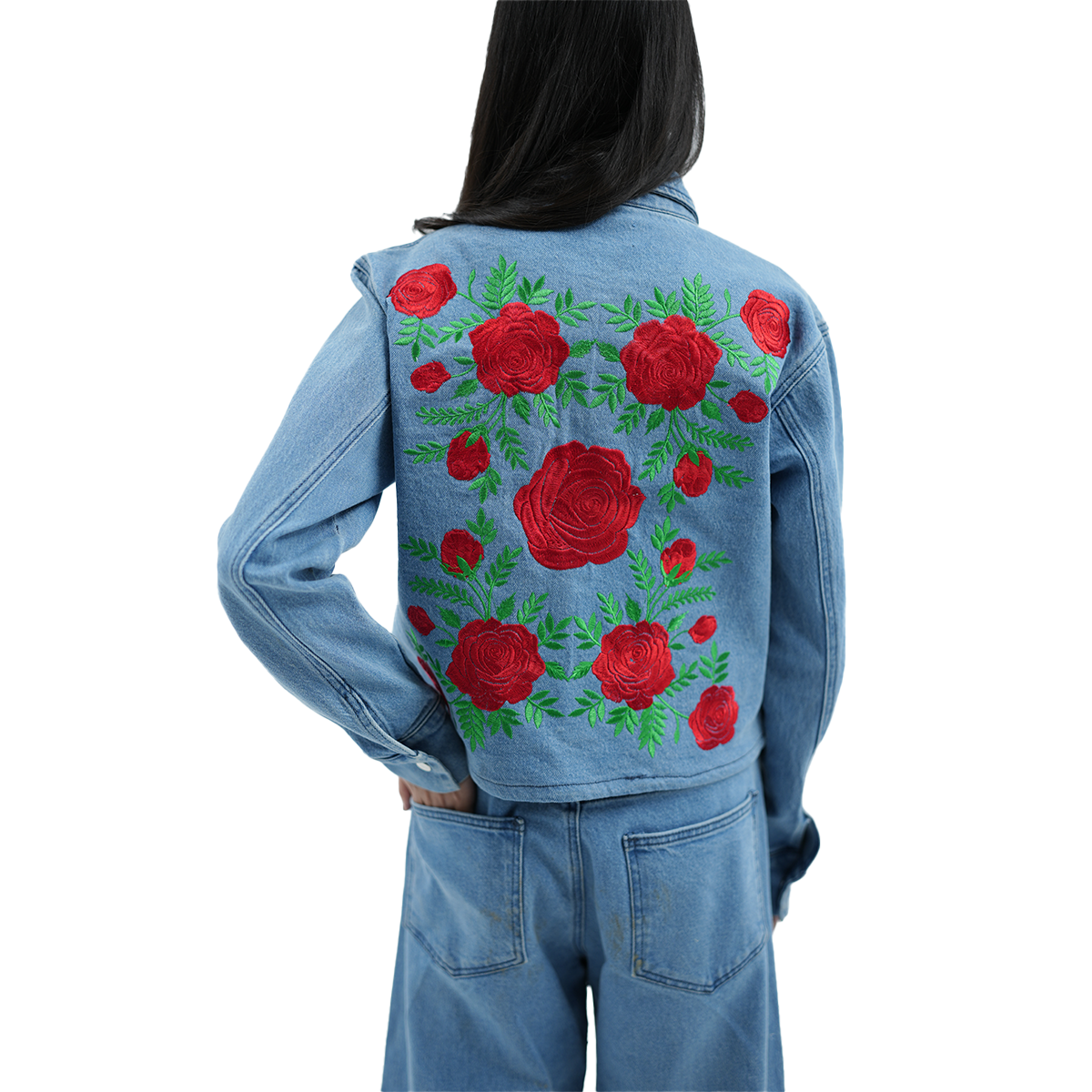Yes, this embroidered shacket womens design features beautiful embroidery on both the front and back, adding a stylish, handcrafted touch.