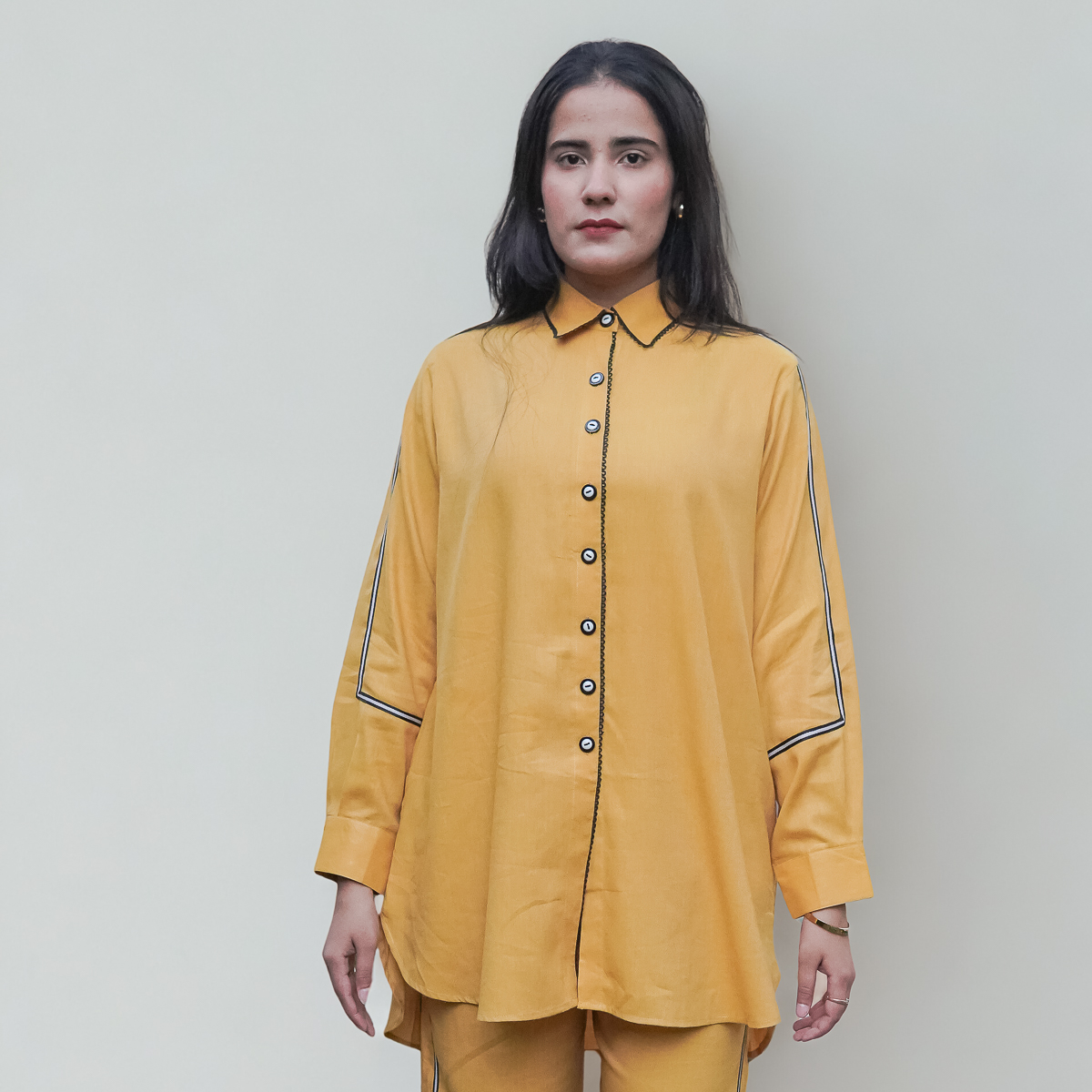Yes, the mustard yellow shade works beautifully in all seasons and adds a fresh, lively look to your outfit. - What detailing does this co-ord set have?