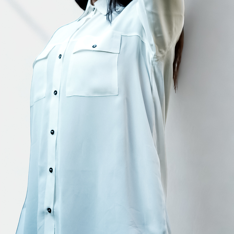 The Pearl Aura women’s shirt is made from soft georgette chiffon fabric that feels light, smooth, and comfortable on the skin. - Does the shirt have pockets?
