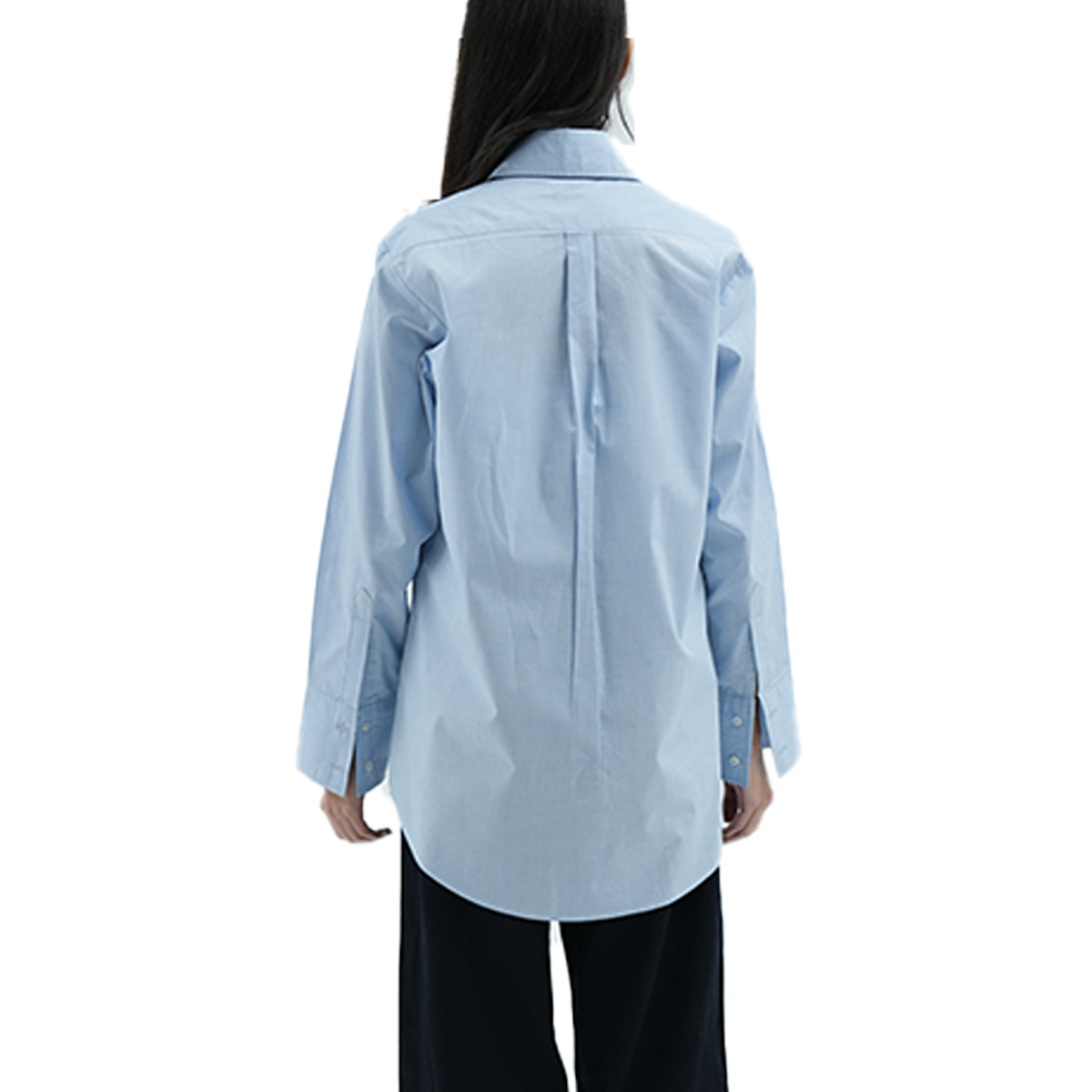 Its long cuffs with two buttons, double front pockets, and fresh light-blue color give it a stylish touch that stands out from a basic shirt. It blends comfort with a neat, structured look.